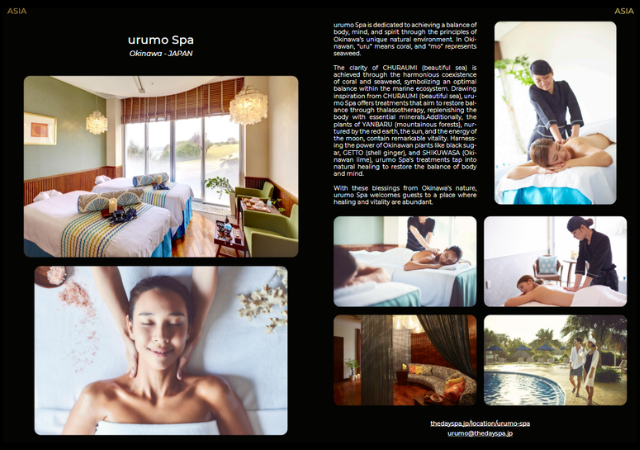 このたび、ANAインターコンチネンタル万座ビーチリゾー内、urumo Spa 〜CHURAUMI Thalassotherapy〜が海外スパ専門メディア「inSPArations」に掲載されました。