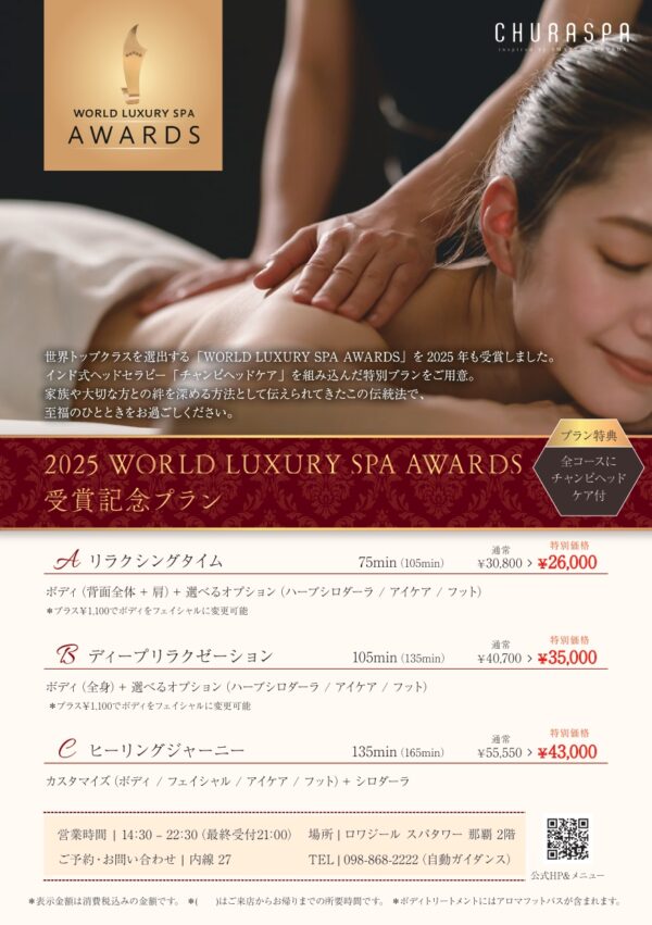 このたび、The Day Spaが運営する国内5つのスパが、世界的に権威ある「WORLD LUXURY SPA AWARDS 2025」を受賞いたしました。