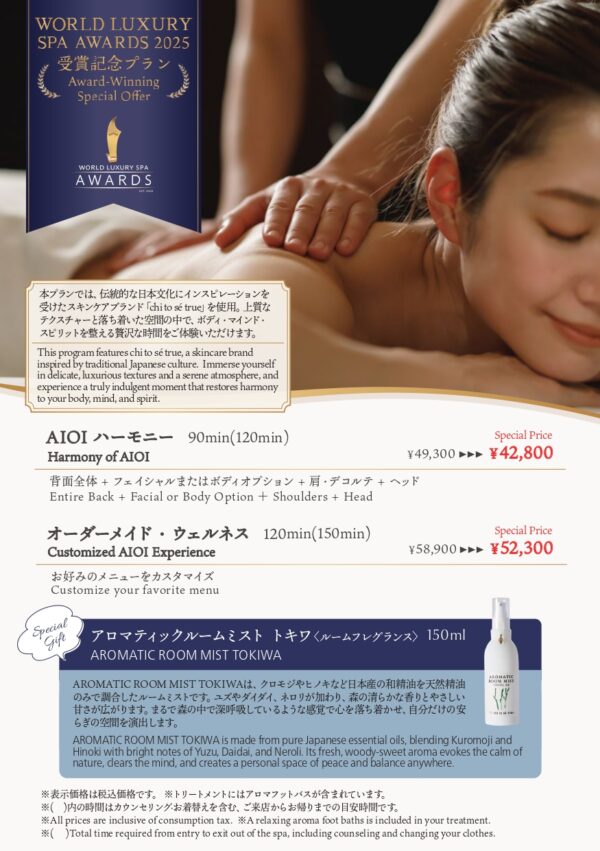 この機会に、心と身体を深くととのえる、唯一無二のトリートメントをぜひお楽しみください。