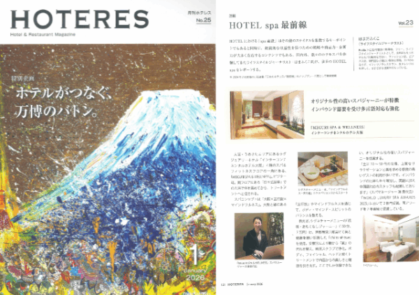 業界誌「ホテレス」内の特集「HOTEL Spa 最前線」 にて、MEGURI SPA & WELLNESS が紹介されました。